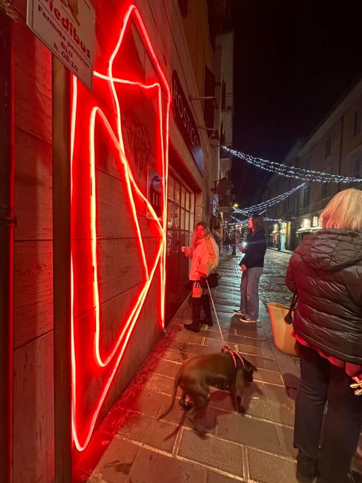 Nel contesto natalizio le insegne al neon evocano familiarità, gioia e forse un senso di festa.